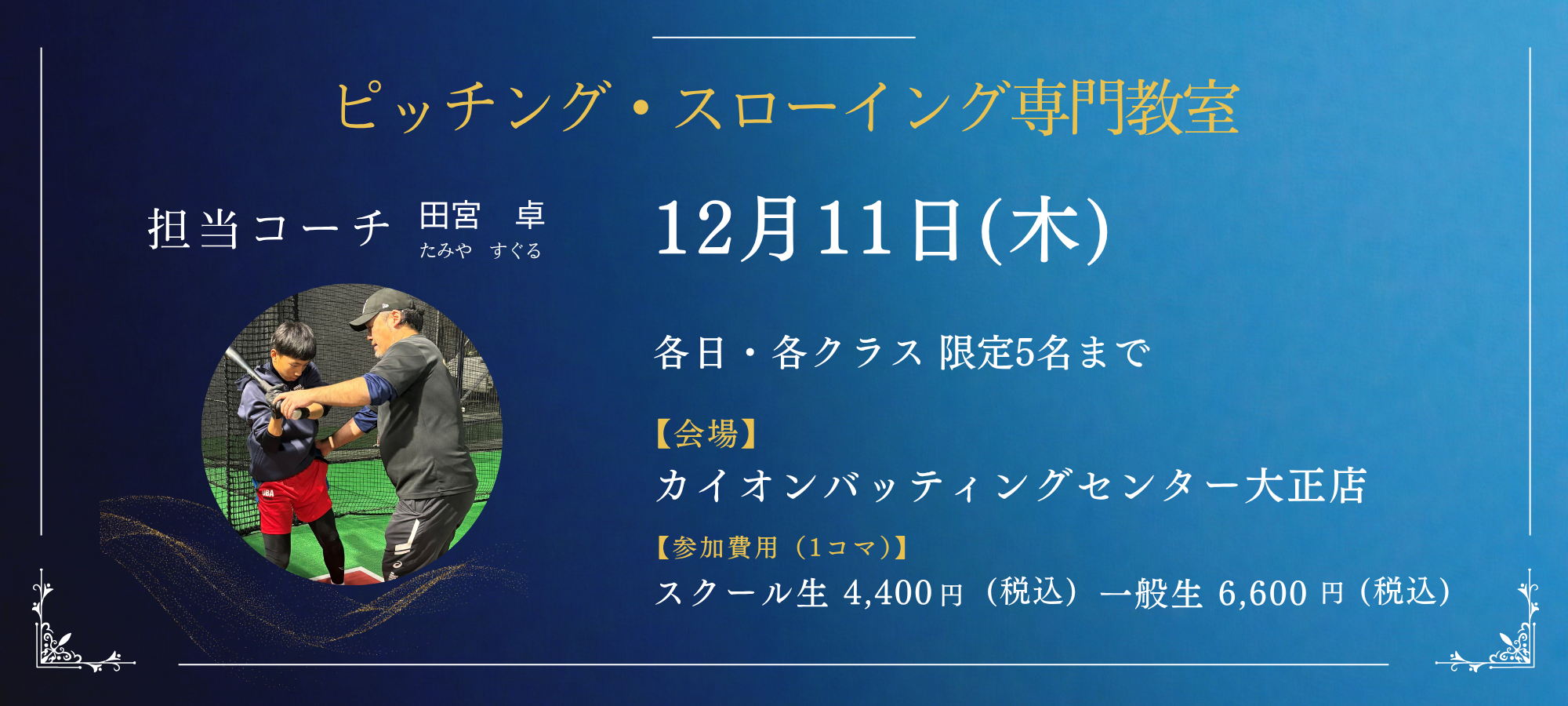 大阪・大正区の「カイオンバッティングセンター大正店」で開催… 続きを読む: 【12月】ピッチング・スローイング専門教室 開催のお知らせ - 【11月】ピッチング・スローイング専門教室 開催のお知らせ